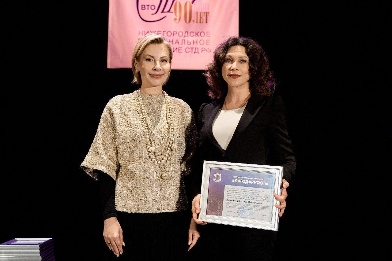 Министр культуры региона Наталья Суханова вручила награды, посвященные юбилею, представителям театрального сообщества. Члены правления регионального отделения СТД РФ, такие как артистка Нижегородского театра драмы имени М. Горького Татьяна Горькушова, директор Нижегородского театра комедии Дмитрий Коновалов, заместитель директора Дзержинского театра драмы Елена Османова, главный режиссер Дзержинского театра драмы Андрей Поскребкин, председатель контрольно-ревизионной комиссии регионального отделения СТД РФ и директор Нижегородского камерного театра оперы и музыкальной комедии имени В.Т. Степанова Николай Коровин, а также главный бухгалтер регионального отделения СТД РФ Николай Трубин были удостоены Благодарственных писем правительства Нижегородской области. Член регионального отделения СТД РФ, артистка Нижегородского театра драмы имени М. Горького Наталья Зарубина также получила благодарность от губернатора области.